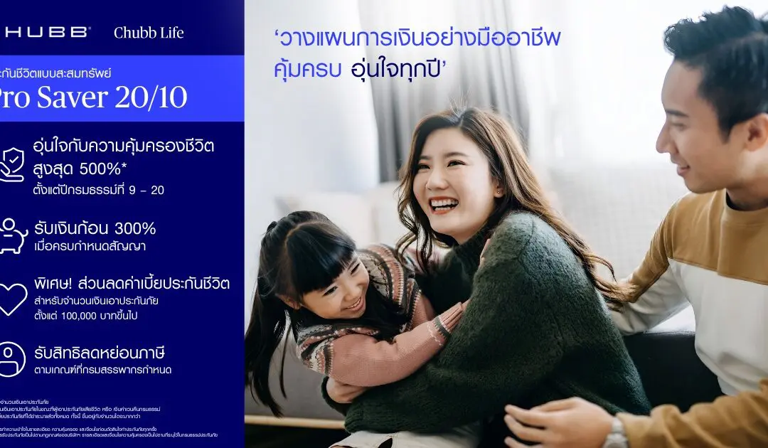 ชับบ์ ไลฟ์ ประกันชีวิต เปิดตัว 2 ผลิตภัณฑ์ประกันสะสมทรัพย์ใหม่ล่าสุด “โปร เซฟเวอร์ 20/10” และ “สตาร์ต เซฟเวอร์ 25/15” เพื่อตอบสนองความต้องการของคนไทยที่กำลังมองหาตัวช่วยในการวางแผนการเงินอย่างมืออาชีพ ที่มอบความคุ้มครองที่ครอบคลุม ผลประโยชน์ที่คุ้มค่า และการวางแผนภาษีโค้งสุดท้ายก่อนสิ้นปี