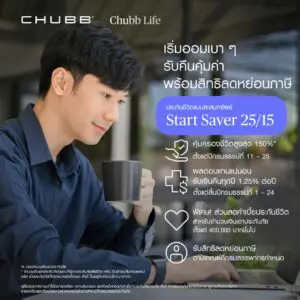 สำหรับผู้ที่สนใจผลิตภัณฑ์ประกันสะสมทรัพย์ จาก ชับบ์ ไลฟ์ ประกันชีวิต สามารถดูรายละเอียดผลิตภัณฑ์ “โปร เซฟเวอร์ 20/10” ได้ที่ https://www.chubb.com/th-th/personal/pro-saver.html ผลิตภัณฑ์ “สตาร์ต เซฟเวอร์ 25/15” ที่ https://www.chubb.com/th-th/personal/start-saver.html หรือผลิตภัณฑ์อื่นๆ สำหรับการลดหย่อนภาษีปลายปี ได้ที่ https://www.chubb.com/th-th/ หรือติดต่อตัวแทนฯ ชับบ์ ไลฟ์ ประกันชีวิต ทั่วประเทศ