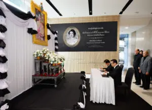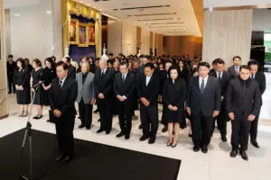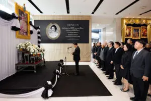 ในการนี้ นายสมใจนึก เองตระกูล ได้กล่าวถวายความอาลัย ขอน้อมรำลึกในพระมหากรุณาธิคุณอันหาที่สุดมิได้ ภายในพิธีมีการยืนสงบนิ่งเป็นเวลา 1 นาที เพื่อแสดงความอาลัยอย่างสุดซึ้ง คณะผู้บริหารและพนักงานร่วมลงนามถวายความอาลัย บรรยากาศเป็นไปด้วยความสงบและเปี่ยมด้วยความจงรักภักดี