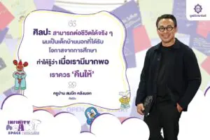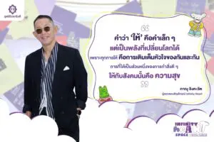 “ของที่ระลึกจึงไม่ใช่เพียงสิ่งของหนึ่งชิ้น แต่คือ ‘สื่อกลางของหัวใจ’ ที่เชื่อมโยงหัวใจของผู้คน และพลังบวกจากผู้ให้ไปถึงผู้รับอย่างงดงาม ซึ่งเป็นที่มาของคอนเซ็ปต์ ‘Infinity heART Space’ ของงานในครั้งนี้ เราหวังว่านิทรรศการนี้จะเป็นแรงบันดาลใจให้ทุกคนได้เห็นว่า ‘การให้‘ คือพลังสร้างสรรค์ที่งดงาม และเป็นคุณค่าทางใจที่ไม่สิ้นสุด เพื่อร่วมกันสร้างฐานของการให้ที่แข็งแรงและยั่งยืนต่อไป”