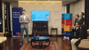 สถานเอกอัครราชทูตชิลีประจำประเทศไทย ร่วมกับ ProChile สำนักงานส่งเสริมการส่งออกของชิลี โดยการนำของรองหัวหน้าคณะผู้แทนทางการทูต สถานเอกอัครราชทูตชิลี ประจำประเทศไทย มร.ดาวิด ฮันเซน (David Hansen) และผู้แทนการค้าชิลีประจำประเทศไทย มร. ออสการ์ อาริอากาดา ( Oscar Arriagada) ร่วมเป็นเจ้าภาพเลี้ยงรับรองเป็น เกียรติแก่คณะผู้แทนสตาร์ทอัพ ชั้นนำจากประเทศชิลีที่เดินทางมาพบปะ ผู้บริหารหน่วยงานด้านนวัตกรรม ระดับชาติและพันธมิตรในประเทศไทย ณ ทำเนียบเอกอัครราชทูตชิลี เมื่อเร็วๆนี้ โดยมีผู้บริหารจากองค์กรภาครัฐและเอกชนที่เกี่ยวข้อง ตลอดจนสตาร์ทอัพของไทยร่วมงาน