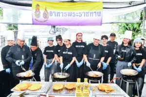 อีกทั้งได้รับความร่วมมือจากผู้บริหารและจิตอาสาหลายภาคส่วน อาทิ คุณซันนี่ อิสรีย์ สุวรรณวิทย์ ผู้บริหารบริษัท Knightsbridge Group จำกัด, เชน เฮฟเฟอร์แนน, เอ็มมิลี่ ชีวัน เฮฟเฟอร์แนน, พญ.รุ่งไพลิน รัตนชีวร (หมอแยม), เติ้ล สุทธิ์คุณ วันทานุ, มาดามน้อย วิภาณฎา กุลสุจริต รวมถึงศิลปินดาราชื่อดัง อาทิ หม่ำ จ๊กมก และ บอย ภิษณุ พร้อมทั้ง แมน – เกรียงศักดิ์ เกรียงไกรนิยม (Whiz Global Entertainment) ที่นำ 10 ศิลปินจาก PROJEXT 52 มาร่วมแรงร่วมใจทำ “เมนูข้าวไข่เจียว” แจกจ่ายวันละกว่า 2,000 กล่อง ภายใต้โครงการ “น้ำพระทัย พระราชทาน” เพื่อร่วมแสดงความจงรักภักดีและน้อมสำนึกในพระมหากรุณาธิคุณเป็นล้นพ้นอย่างหาที่สุดมิได้
