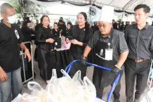 นอกจากนี้ยังมีประชาชนจิตอาสาร่วมสมทบบริจาคอาหาร ขนม และเครื่องดื่ม เพื่อนำไปมอบให้ผู้ที่เดินทางมาถวายบังคมพระบรมศพสมเด็จพระบรมราชชนนีพันปีหลวง ณ เต็นท์อาหารพระราชทาน โดย สภาสังคมสงเคราะห์แห่งประเทศไทย ในพระบรมราชูปถัมภ์
