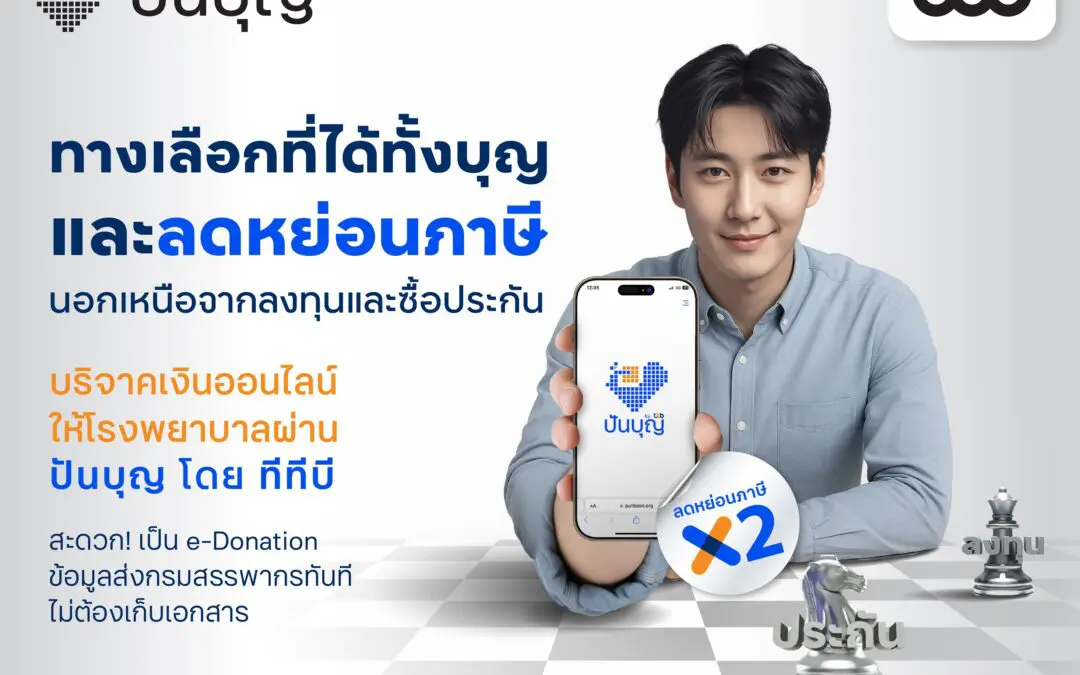 “ปันบุญ โดย ทีทีบี” เว็บไซต์บริจาคเงินออนไลน์ ที่เปิดโอกาสให้ทุกคนได้ร่วมช่วยเหลือโรงพยาบาลท้องถิ่นและองค์กรสาธารณกุศลที่น่าเชื่อถือทั่วประเทศ พร้อมรับสิทธิลดหย่อนภาษีได้สูงสุด 2 เท่าของยอดเงินบริจาค และไม่เกิน 10% ของเงินได้หลังหักค่าใช้จ่ายและค่าลดหย่อนอื่น ๆ ตามเงื่อนไขของกรมสรรพากร โดยปันบุญได้เชื่อมต่อระบบ e-Donation ของกรมสรรพากร ทำให้ข้อมูลส่งตรงไปยังกรมสรรพากรทันที ผู้บริจาคได้รับความสะดวกยิ่งขึ้น และหมดกังวลเรื่องการหาเอกสารไม่เจอ สำหรับท่านที่ต้องการตรวจสอบข้อมูลการบริจาคเงินให้แก่องค์กรที่เข้าร่วมโครงการ e-Donation สามารถตรวจสอบจากเว็บไซต์กรมสรรพากร ในหัวข้อ My Tax Account