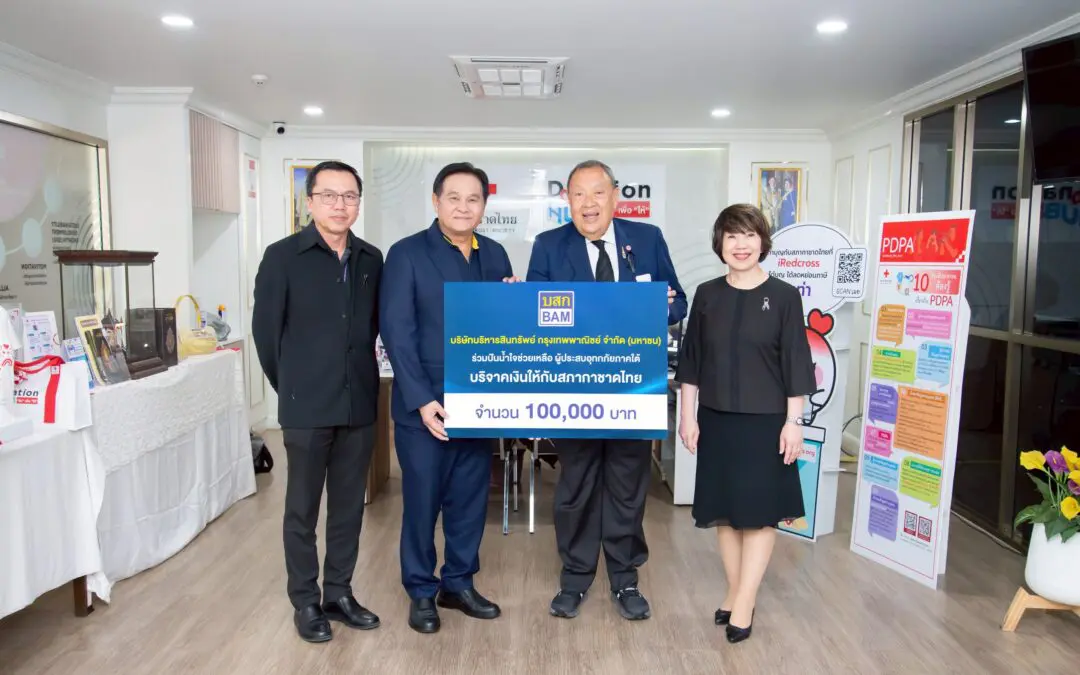 คุณสมพร มูลศรีแก้ว ผู้จัดการใหญ่ สายธุรกิจ คุณวุฒิพงศ์ บุญยะสิทธิ์ ผู้ช่วยประธานเจ้าหน้าที่บริหาร สายพัฒนาสินทรัพย์ภูมิภาค 2 บริษัทบริหารสินทรัพย์ กรุงเทพพาณิชย์ จำกัด (มหาชน) หรือ BAM มอบเงินสมทบโครงการปันน้ำใจช่วยเหลือผู้ประสบอุทกภัยในพื้นที่ภาคใต้ ให้กับสภากาชาดไทย จำนวน 100,000 บาท โดยมีคุณขรรค์ ประจวบเหมาะ ผู้อำนวยการสำนักงานจัดหารายได้ และคุณจันทร์ประภา วิชิตชลชัย รองผู้อำนวยการสำนักงานจัดหารายได้ เป็นผู้แทนรับมอบ ณ สำนักงานจัดหารายได้ สภากาชาดไทย … BAM ขอเป็นกำลังใจให้ทุกคนก้าวผ่านช่วงวิกฤตนี้ไปด้วยกันและพร้อมเคียงข้างสังคมไทยในทุกช่วงเวลา