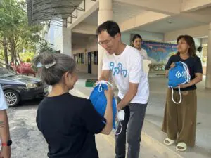 ก่อนการลงพื้นที่ พนักงานของกรุงเทพประกันชีวิตจากหลากหลายฝ่ายได้ร่วมแรงร่วมใจด้วยจิตอาสา ในการบรรจุสิ่งของจำเป็นลงในถุงยังชีพ ทั้งข้าวสาร อาหารแห้ง อุปกรณ์ยังชีพ อุปกรณ์ทำความสะอาด และสิ่งของจำเป็น การร่วมมือกันด้วยความตั้งใจของทุกคนสะท้อนถึงพลังแห่งน้ำใจที่กรุงเทพประกันชีวิตมุ่งส่งต่อให้ถึงมือผู้ประสบภัยอย่างรวดเร็วและทั่วถึงที่สุด