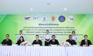 โดยมี นายพันธ์ทอง ลอยกุลนันท์ อธิบดีกรมศุลกากร นางอารดา เฟื่องทอง อธิบดีกรมการค้าต่างประเทศ นายวิทยากร มณีเนตร อธิบดีกรมการค้าภายใน นายสุวัฐน์ วงศ์สุวัฒน์ รองอธิบดีกรมประมง นายสัตวแพทย์รักไทย งามภักดิ์ รองอธิบดีกรมปศุสัตว์ และนายวงกต วิจักขณ์สังสิทธิ์ รองกรรมการผู้จัดการใหญ่ สายงานดิจิทัลและโซลูชัน บริษัท โทรคมนาคมแห่งชาติ จำกัด (มหาชน) ร่วมลงนาม โดยจากความร่วมมือในครั้งนี้ ทุกหน่วยงานมีแผนที่จะเปิดให้มีการเชื่อมโยงข้อมูลแหล่งกำเนิดสินค้าแบบอิเล็กทรอนิกส์ภายใต้ความตกลงการค้าสินค้าของอาเซียน หรือ ASEAN Trade in Goods Agreement (ATIGA e-Form D) ผ่านแพลตฟอร์มกลาง THAI NSW เพื่อให้หน่วยงานต่าง ๆ ที่เกี่ยวข้อง สามารถนำข้อมูลไปใช้ประกอบการออกใบอนุญาต รวมถึงใบรับรองได้อย่างสะดวก รวดเร็ว เพิ่มประสิทธิภาพในการบูรณาการข้อมูลระหว่างหน่วยงานภาครัฐและภาคธุรกิจ ทั้งนี้ แพลตฟอร์มกลาง THAI NSW มีการเชื่อมโยงแลกเปลี่ยนข้อมูลกับประเทศสมาชิกอาเซียนผ่าน ASEAN Single Window : ASW และหน่วยงานที่เกี่ยวข้องซึ่งก็มีการเชื่อมโยงกับแพลตฟอร์มกลาง THAI NSW อยู่ด้วยแล้ว