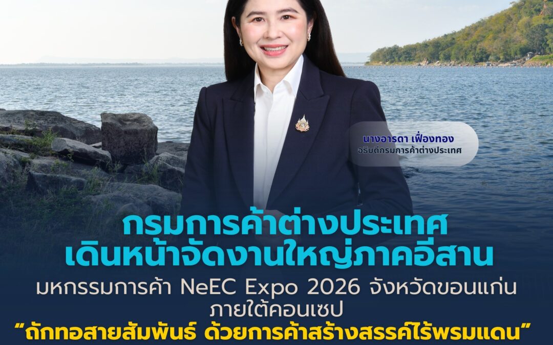 กระทรวงพาณิชย์ โดยกรมการค้าต่างประเทศ เตรียมจัดงานใหญ่ภาคอีสาน มหกรรมการค้าระเบียง เขตเศรษฐกิจพิเศษ ภาคตะวันออกเฉียงเหนือ NeEC Expo 2026 ณ จังหวัดขอนแก่น ภายใต้คอนเซป “ถักทอสายสัมพันธ์ ด้วยการค้าสร้างสรรค์ไร้พรมแดน” ระหว่างวันที่ 29 มกราคม – 1 กุมภาพันธ์ 2569 ณ ศูนย์การประชุมและแสดงสินค้านานาชาติไคซ์ (KICE) อำเภอเมืองขอนแก่น จังหวัดขอนแก่น