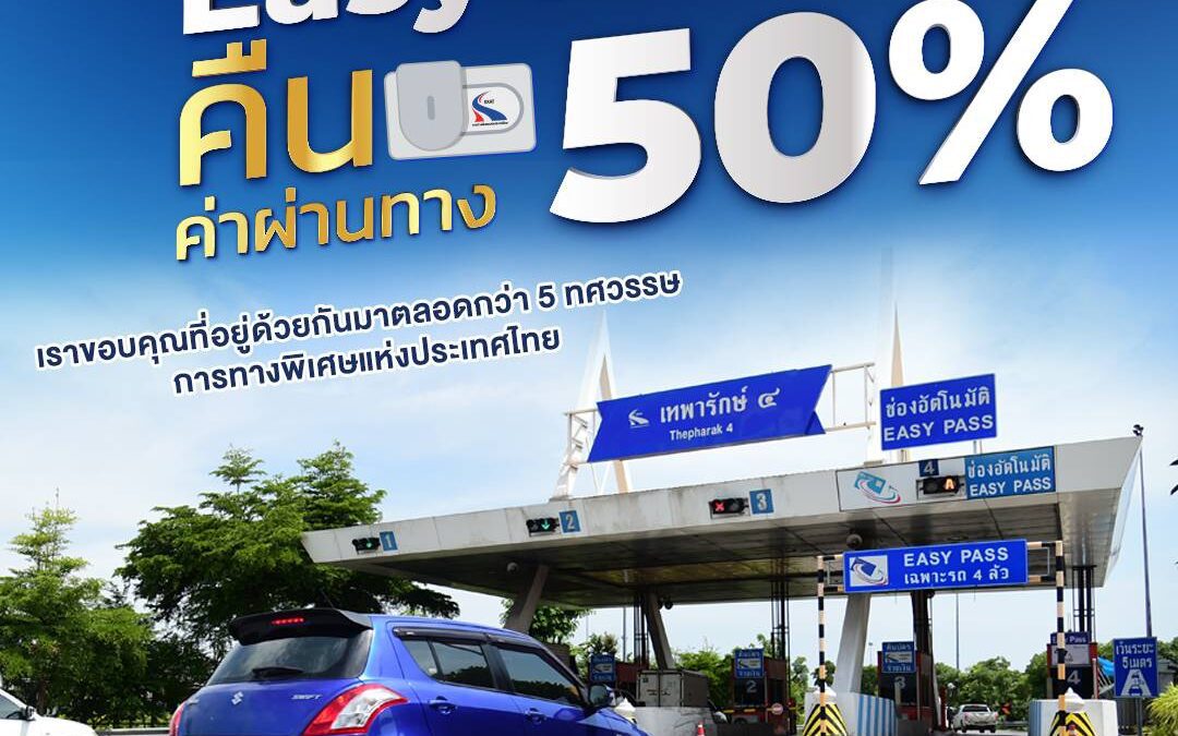 การทางพิเศษแห่งประเทศไทย (กทพ.) ชวนประชาชนและผู้ใช้ทางพิเศษร่วมรับของขวัญต้อนรับปีใหม่ กับแคมเปญพิเศษ “EASY PASS…Cashback” มอบเงินคืนค่าผ่านทางพิเศษ 50% สำหรับผู้ที่ชำระค่าผ่านทางด้วยระบบ EASY PASS เฉพาะวันที่ 6 มกราคม 2569 ตั้งแต่เวลา 00.01–24.00 น. ครอบคลุมทางพิเศษในสังกัด กทพ. ทั้ง 7 สายทาง