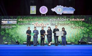 จากนั้น ดร.ธีรภัทร ประยูรสิทธิ ประธานกรรมการโครงการประกาศเกียรติคุณ “ชุมชนไม้มีค่า” ระดับประเทศ ได้กล่าวรายงานความเป็นมาว่า วช. เล็งเห็นความสำคัญและดำเนินโครงการนี้ต่อเนื่องมาเป็นปีที่ 3 ตั้งแต่ปี 2566 เพื่อกระตุ้นให้ชุมชนประยุกต์ใช้องค์ความรู้และเทคโนโลยีที่เหมาะสมในการพัฒนาชุมชนไม้มีค่า ส่งเสริมการแลกเปลี่ยนเรียนรู้ภายในเครือข่ายเพื่อเพิ่มพื้นที่สีเขียวอย่างยั่งยืน รวมถึงการสร้างผลิตภัณฑ์และรายได้จากการบริหารจัดการชุมชน และในปี 2568 นี้ มีชุมชนสนใจสมัครเข้าร่วมรวมทั้งสิ้น 23 ชุมชน โดยผ่านกระบวนการคัดเลือกทั้งการพิจารณาจากเอกสารตามเกณฑ์ 5 ด้านสำคัญ และการลงพื้นที่รับฟังการนำเสนอผลการดำเนินงานจริง จนได้ชุมชนต้นแบบที่ผ่านเกณฑ์รับรางวัล ดังนี้