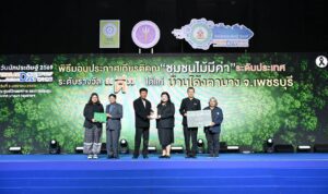 จากนั้น ดร.ธีรภัทร ประยูรสิทธิ ประธานกรรมการโครงการประกาศเกียรติคุณ “ชุมชนไม้มีค่า” ระดับประเทศ ได้กล่าวรายงานความเป็นมาว่า วช. เล็งเห็นความสำคัญและดำเนินโครงการนี้ต่อเนื่องมาเป็นปีที่ 3 ตั้งแต่ปี 2566 เพื่อกระตุ้นให้ชุมชนประยุกต์ใช้องค์ความรู้และเทคโนโลยีที่เหมาะสมในการพัฒนาชุมชนไม้มีค่า ส่งเสริมการแลกเปลี่ยนเรียนรู้ภายในเครือข่ายเพื่อเพิ่มพื้นที่สีเขียวอย่างยั่งยืน รวมถึงการสร้างผลิตภัณฑ์และรายได้จากการบริหารจัดการชุมชน และในปี 2568 นี้ มีชุมชนสนใจสมัครเข้าร่วมรวมทั้งสิ้น 23 ชุมชน โดยผ่านกระบวนการคัดเลือกทั้งการพิจารณาจากเอกสารตามเกณฑ์ 5 ด้านสำคัญ และการลงพื้นที่รับฟังการนำเสนอผลการดำเนินงานจริง จนได้ชุมชนต้นแบบที่ผ่านเกณฑ์รับรางวัล ดังนี้