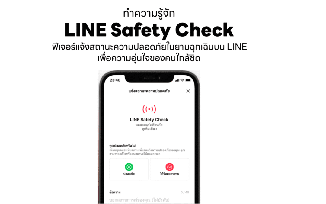 ความร่วมมือดังกล่าวนับเป็นอีกหนึ่งหมุดหมายสำคัญในการพัฒนา LINE Safety Check ให้ตอบโจทย์การสื่อสารด้านความปลอดภัยของประชาชนในยามฉุกเฉิน พร้อมตอกย้ำบทบาทของ LINE ในฐานะแพลตฟอร์มดิจิทัลที่อยู่เคียงข้างคนไทยในทุกช่วงเวลา ภายใต้วิสัยทัศน์ “Create an Amazing Life Platform that brings WOW! to our users”