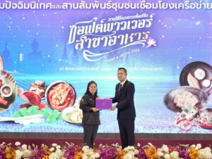ในกิจกรรมปัจฉิมนิเทศและสานสัมพันธ์ชุมชนเชื่อมโยงเครือข่ายภายใต้หลักสูตร “Master Thai Chef Program” มุ่งปั้น 20,000 เชฟทักษะสูงสู่การเป็นกำลังคนขับเคลื่อนยกระดับเมนูไทยสู่สินค้าพรีเมียมในเวทีโลก พร้อมสร้างระบบนิเวศการค้าที่ยั่งยืนเชื่อมโยงวัตถุดิบชุมชนต้นน้ำสู่ธุรกิจปลายน้ำ เพื่อกระตุ้นเม็ดเงินหมุนเวียนเศรษฐกิจฐานรากกว่า 3,300 ล้านบาท และเสริมเกราะป้องกันผู้ประกอบการด้วย Made by Thai และ เทคโนโลยี Data Analytics รับมือมาตรการกีดกันทางการค้าและนโยบายภาษีนำเข้าใหม่จากตลาดโลก