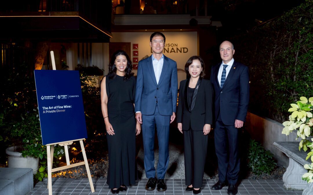 กรุงเทพประกันชีวิต ร่วมกับ ไพร์เวทแบงก์ ธนาคารกรุงเทพ และคริสตีส์ ประเทศไทย เชิญลูกค้าไพร์เวทแบงก์ ธนาคารกรุงเทพ ร่วมสัมผัสค่ำคืนสุดพิเศษกับงาน “The Art of Fine Wine: A Private Dinner” ประสบการณ์ Fine Dining และ Wine Pairing ระดับเวิลด์คลาส ที่รังสรรค์ขึ้นอย่างพิถีพิถันเพื่อมอบช่วงเวลาอันน่าจดจำ ไฮไลต์ของค่ำคืนนี้คือการนำเสนอไวน์ชั้นเลิศโดย Tim Triptree ผู้อำนวยการฝ่ายไวน์และสุราระดับนานาชาติของ Christie’s ผู้ถ่ายทอดเรื่องราวและศิลปะแห่งไวน์ผ่านการจับคู่รสชาติอย่างลงตัวกับแต่ละเมนู ภายในบรรยากาศสุดเอ็กซ์คลูซีฟ ณ Maison Dunand แขกผู้ร่วมงานจะได้ดื่มด่ำกับประสบการณ์แห่งรสชาติที่ออกแบบมาอย่างประณีต เพื่อยกระดับทุกสัมผัสของการรับประทานอาหารและการดื่มไวน์อย่างสมบูรณ์แบบ