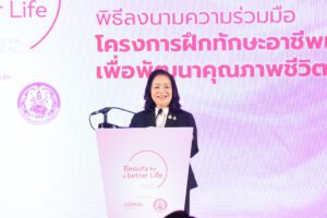 นางจตุพร กล่าวว่า บริษัท ลอรีอัล (ประเทศไทย) จำกัด ได้ให้การสนับสนุนและให้ความร่วมมือกับกรมกิจการสตรีและสถาบันครอบครัว (สค.) อย่างดียิ่งเสมอมา เพื่อขับเคลื่อนงานด้านสังคม ที่มุ่งเน้นการช่วยเหลือกลุ่มเปราะบาง สอดคล้องกับภารกิจของกระทรวง พม. ทั้งในด้านการพัฒนาศักยภาพสตรี ส่งสริมความเสมอภาคและความเท่าเทียม สร้างความเข้มแข็งของสถาบันครอบครัว และช่วยเหลือกลุ่มเป้าหมายที่เป็นผู้ประสบปัญหาทางสังคม โดยมุ่งเน้นการส่งเสริมและพัฒนาอาชีพให้แก่สตรีและกลุ่มครอบครัวเปราะบาง ให้มีโอกาสในการเข้าถึงทรัพยากรเพื่อการประกอบอาชีพตลอดจนสร้างรายได้และสามารถเลี้ยงดูตนเองและครอบครัวให้มีคุณภาพชีวิตที่ดีขึ้น โดย สค. ร่วมกับบริษัท ลอรีอัล (ประเทศไทย) จํากัด ได้ลงนามบันทึกความเข้าใจ (MOU) โครงการฝึกทักษะเสริมสวย เพื่อพัฒนาคุณภาพชีวิต (Beauty for a Better Life) ครั้งแรก เมื่อวันที่ 18 สิงหาคม 2566 ณ โรงแรม ดับเบิ้ลยู กรุงเทพฯ ผ่านการขับเคลื่อนโครงการฝึกทักษะอาชีพเสริมสวย เพื่อพัฒนาคุณภาพชีวิต (Beauty for a Better life) เพื่ออบรมให้แก่กลุ่มเป้าหมายของศูนย์เรียนรู้การพัฒนาสตรีและครอบครัว โดย สค. ได้ดำเนินการจัดหาบุคลากร สถานที่และอุปกรณ์ที่เหมาะสมต่อการฝึกอบรม และจัดฝึกอบรมตามหลักสูตรที่บริษัทลอรีอัลแนะนำ โดยบันทึกความเข้าใจฉบับดังกล่าว จะสิ้นสุดในวันที่ 1 กรกฎาคม 2569